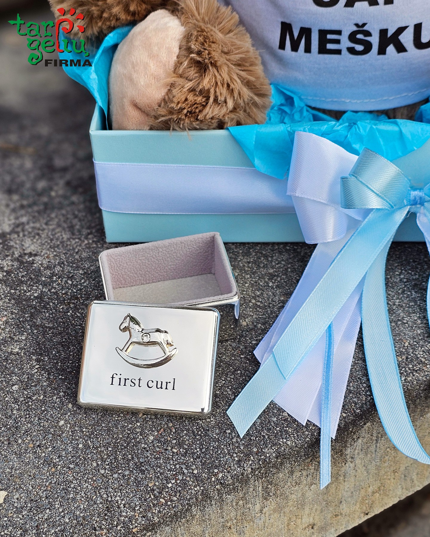 • Metalinė dėžutė "First curl". Matmenys: 5 x 9 x 7 cm.