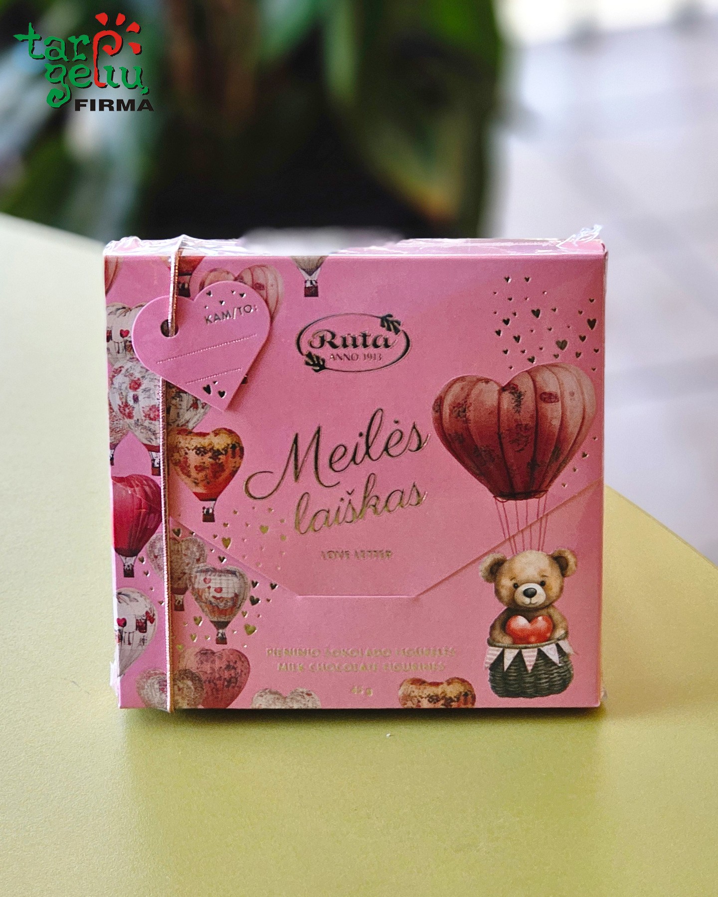 Šis meilės laiškas slepia ne tik žodžius, bet ir širdelės bei lūpų formos pieninio šokolado figūrėles. Atvėrus vokelio formos pakuotę rasite ir romantišką citatą, kuri įkvepia mylėti dar stipriau.