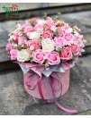 Elegantiška muilo rožių dėžutė, spinduliuojanti švelnumu ir romantika. Subtilūs rožinės ir kreminės spalvos žiedai sukuria harmoningą kompoziciją, kuri džiugins akį ir širdį. Puikus pasirinkimas dovanai ar interjero papuošimui.