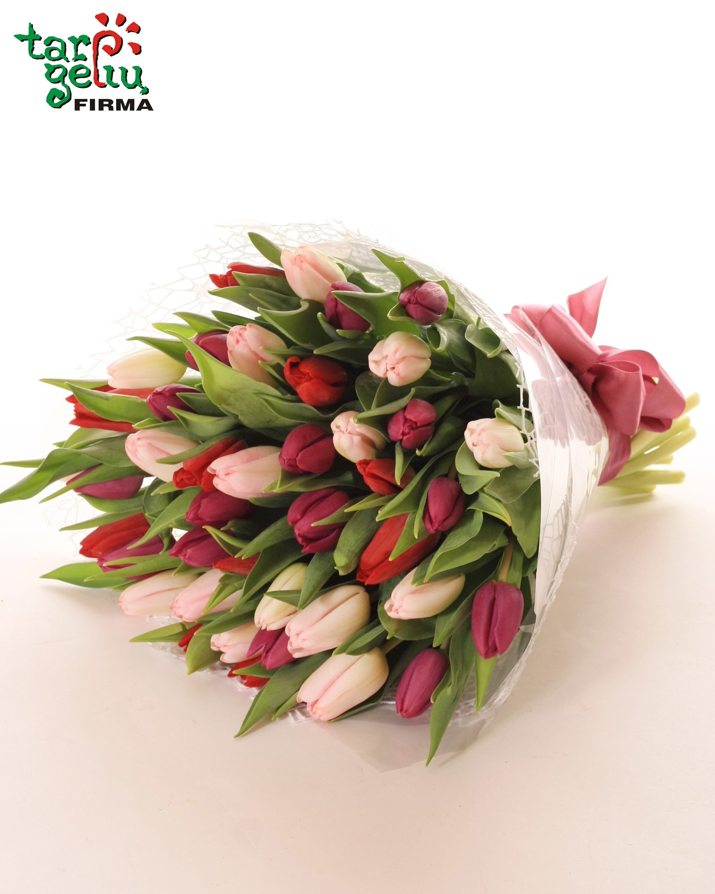Spalvinga tulpių puokštė