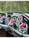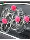 Mašinos puošimas vestuvėms. Mažina papuošta gyvais gvazdikų žiedais ir ratanu.