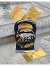 Keramikinė taupyklė "Svarstis" su užrašu, pinigų kupiūros dengtos aukso dulkėmis ir juodojo šokolado figūrėlės. Linksma, praktiška dovana bosui Boso dienos proga.