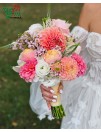 Švelni rudeninė nuotakos puokštė iš jurginų, eustomų, rožių ir kitų smulkių gėlių.