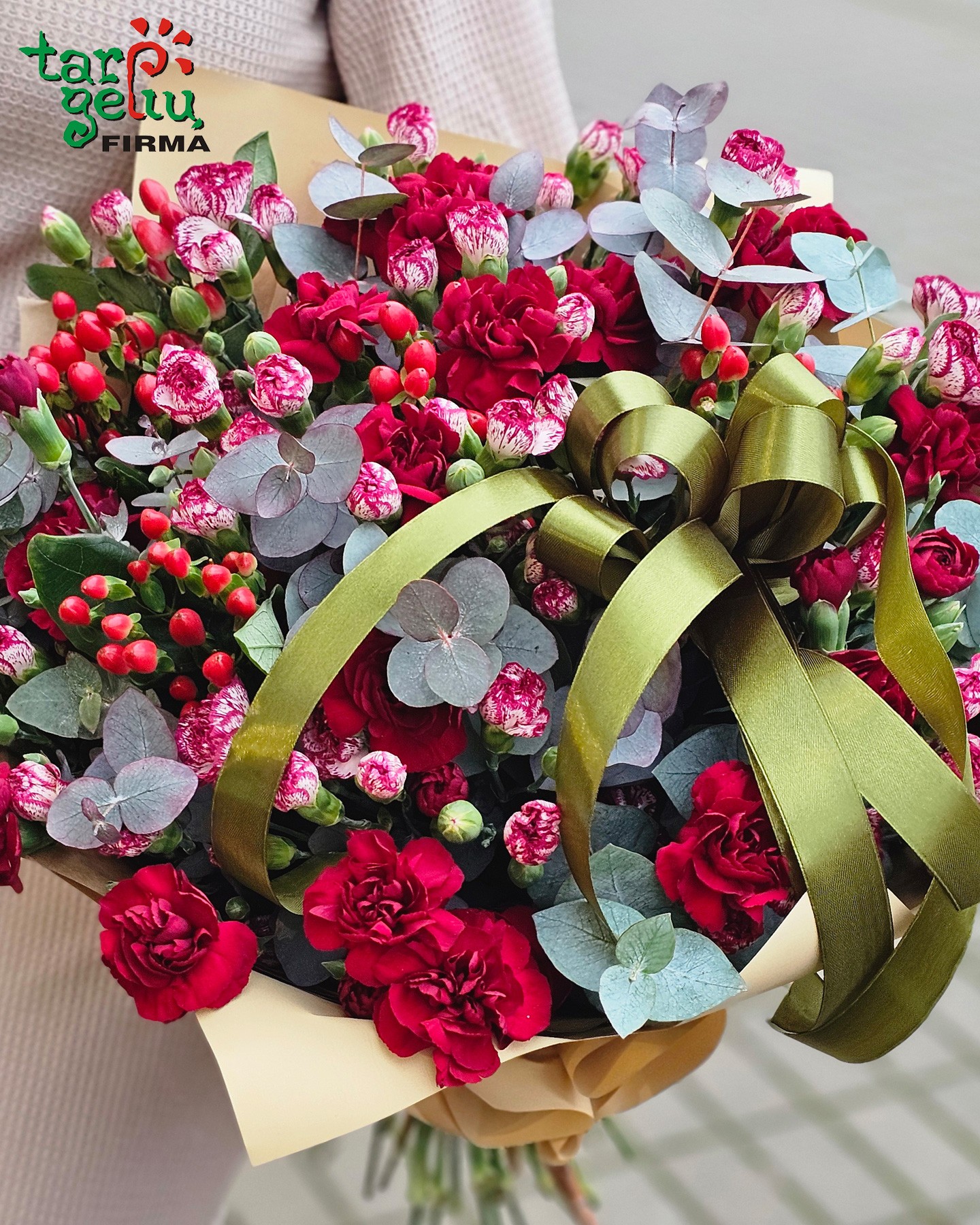 • Smulkiažiedžių gvazdikų puokštė